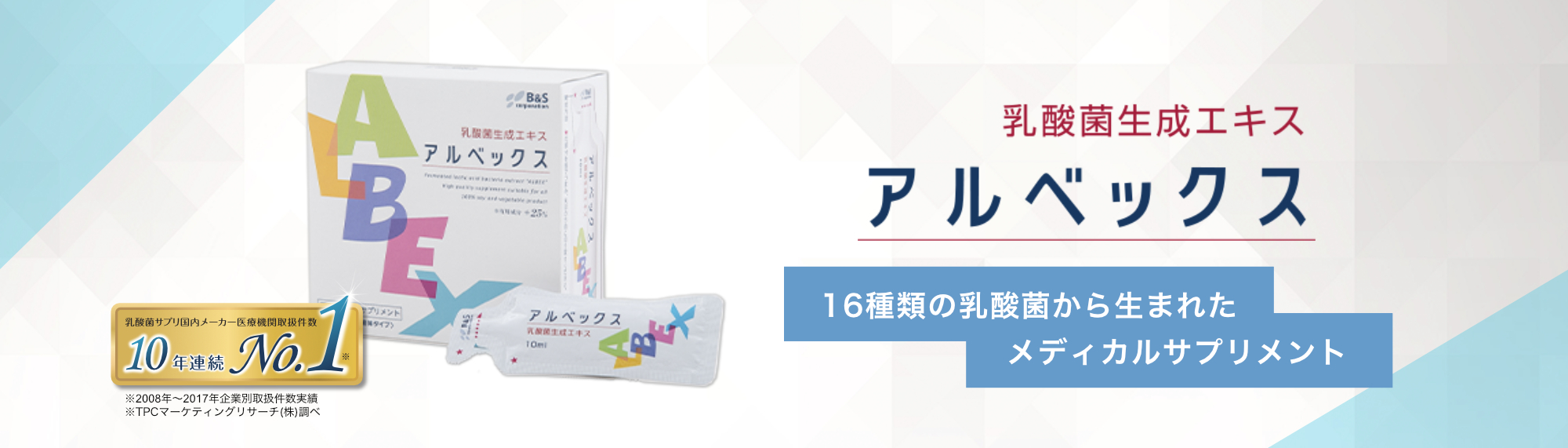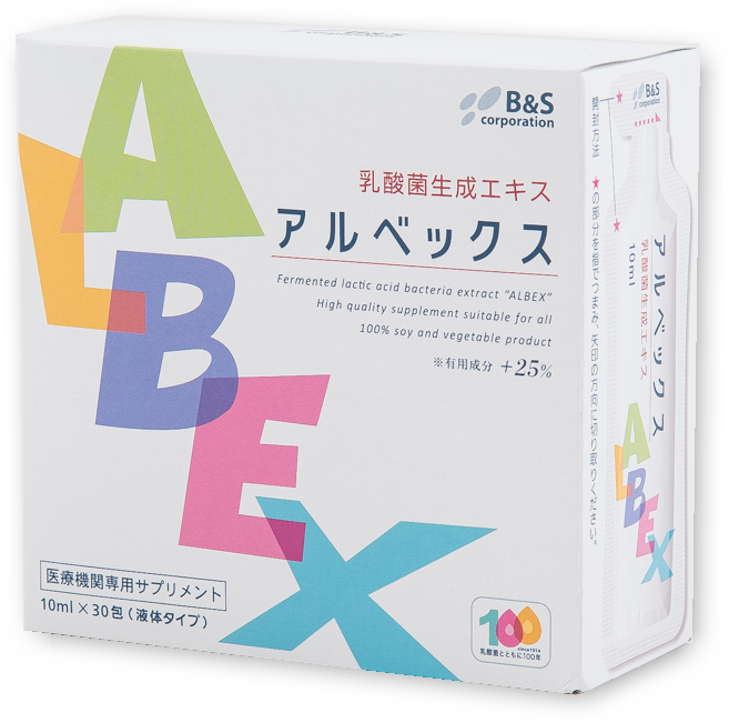 乳酸菌生成エキス「アルベックス」は生きた乳酸菌ではなく、乳酸菌の分泌物(乳酸菌が作り出したエキス)と菌体物質(乳酸菌の細胞物質)です。この乳酸菌生成エキスは、「バイオジェニックス」という乳酸菌の新しい分野に分類される機能性素材です。